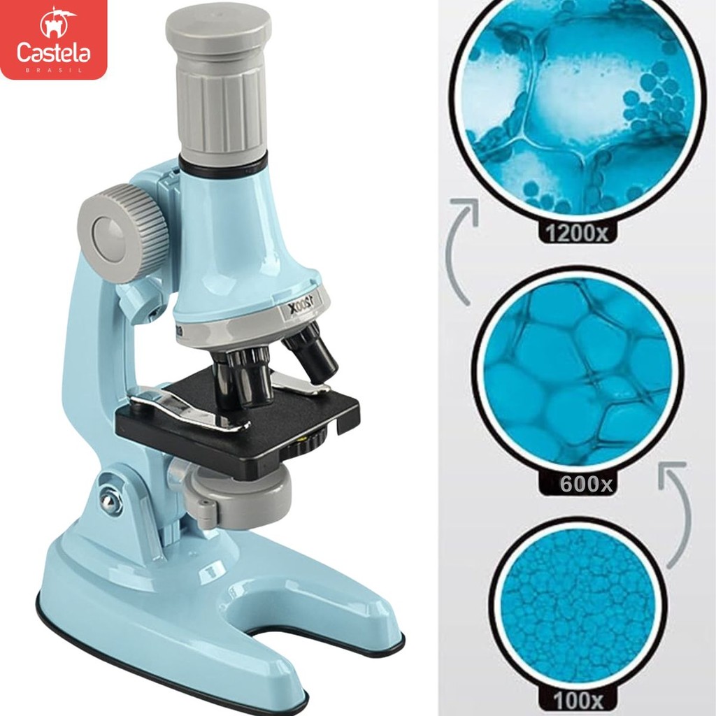 Microscópio Infantil Didático Educacional 100x 400x 1200x Kit com Lâminas e Acessórios – Castela