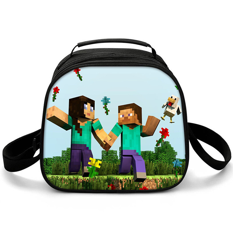 Minecraft anime redonda lancheira térmica infantil meninos meninas estudante Marmita Térmica Portátil bolsa
