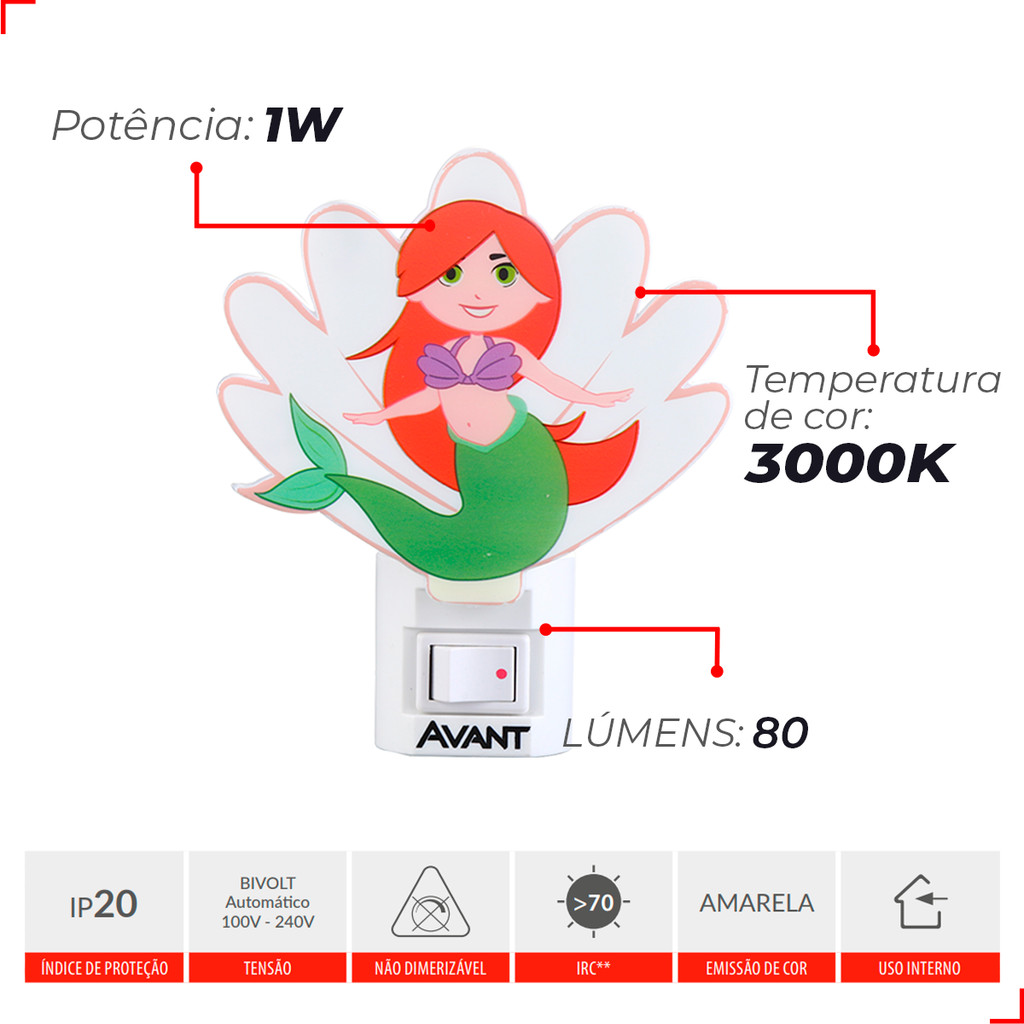 Mini Abajur Sereia Luz Noturna 1W 3000K Bivolt Avant