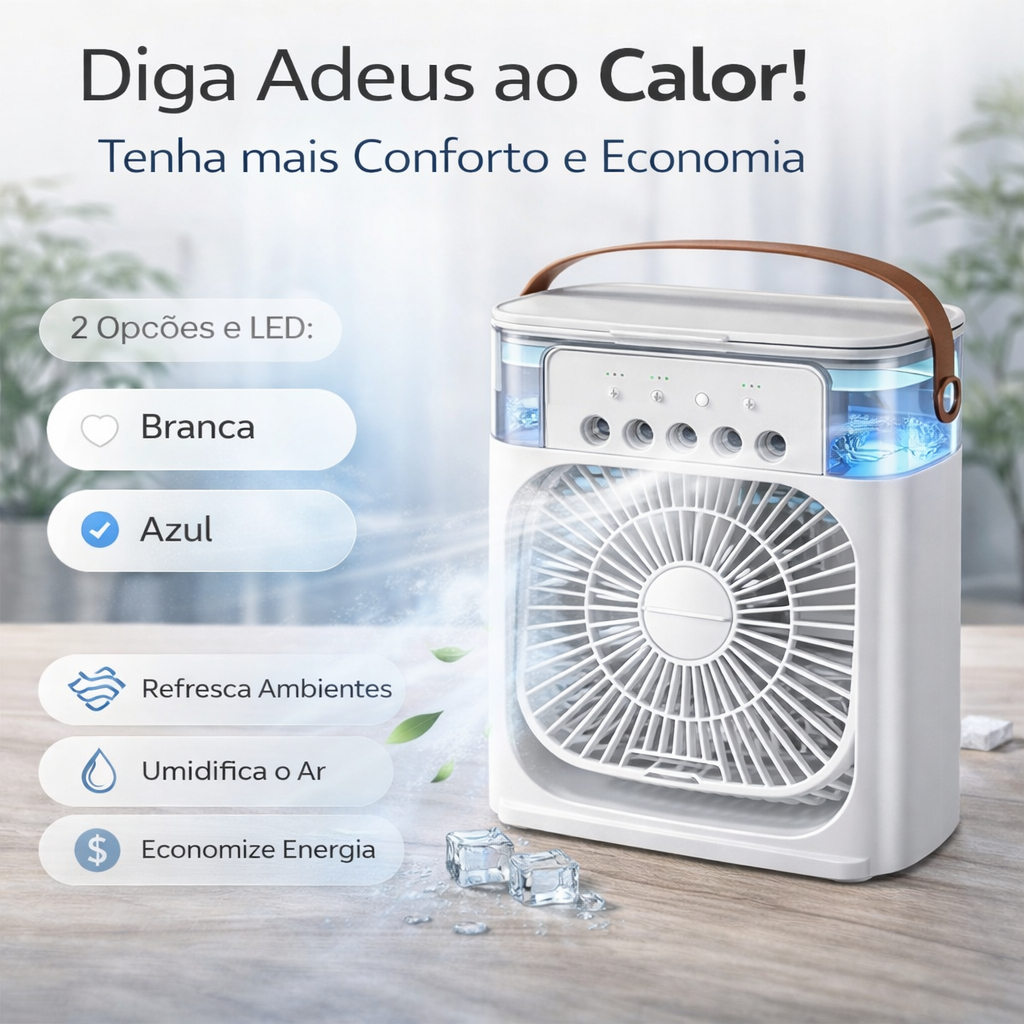 🧊 Mini Ar Condicionado Portátil 4 em 1 Refresque seu ambiente de forma prática, econômica e silenciosa. ❄️ FUNÇÕES ✔ Ventilador ✔ Climatizador ✔ Umidificador ✔ Luz LED 💨 COMO USAR Adicione água (ou gelo) Conecte via USB Ligue e ajuste 💧 DESEMPENHO Reservatório: 600ml 4 velocidades Direção ajustável (360°) 👉 Ideal para uso próximo (mesa, cama, escritório) 🔇 SILENCIOSO E ECONÔMICO Baixo ruído Apenas 6W de consumo 🔌 ALIMENTAÇÃO USB Funciona com: ✔ Notebook ✔ Power bank ✔ Adaptador 🧳 PORTÁTIL Compacto e leve Com alça de transporte 🧼 FÁCIL LIMPEZA Grade removível 📦 ESPECIFICAÇÕES: Capacidade: 600ml Potência: 6W Alimentação: USB 4 níveis de ventilação