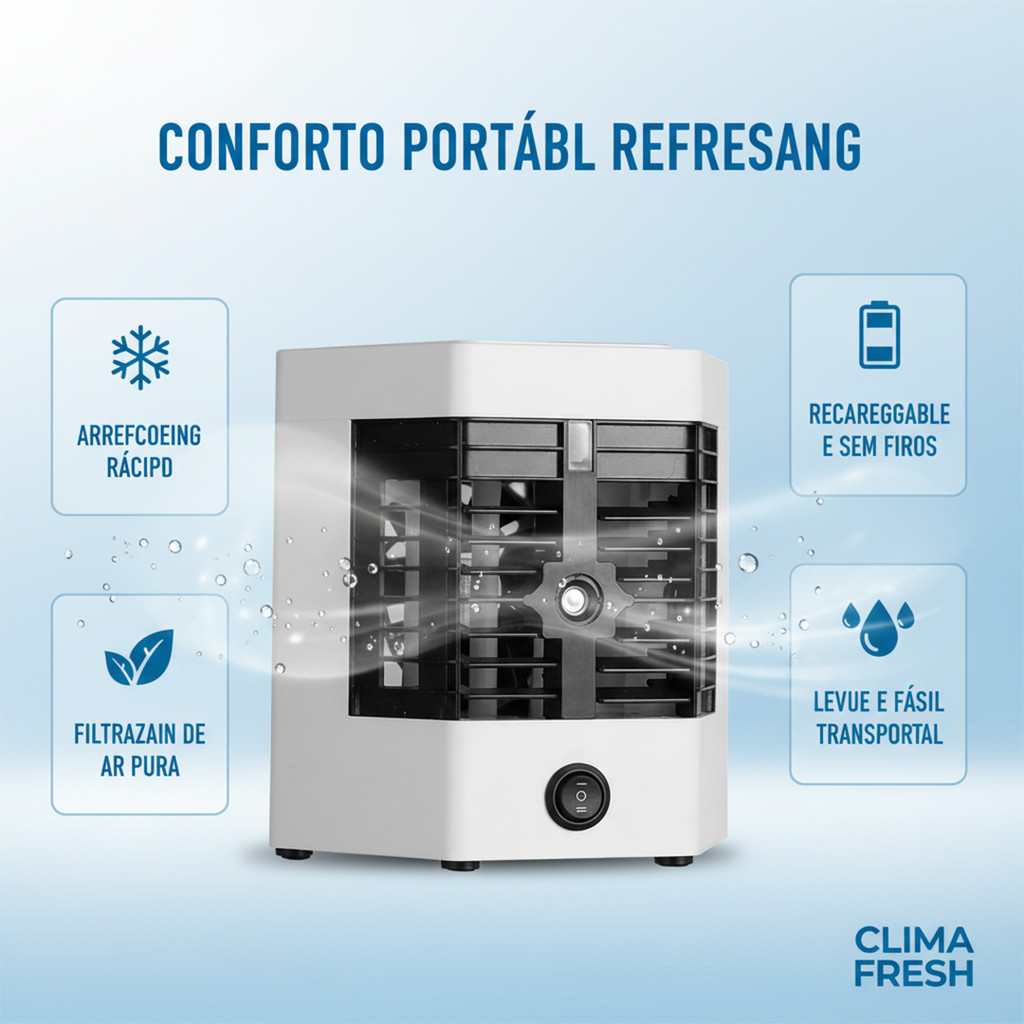 Ideal para todos os tipos de espaços, fácil de usar e instalar. O climatizador portátil ajuda você a conseguir a temperatura certa. Melhora a qualidade do ar A função de umidificação combate o ressecamento provocado no ambiente pelo próprio climatizador, melhorando a circulação do ar durante o uso. Purifica o ar Com esta função, o climatizador portátil não só refresca e atinge a temperatura ideal, mas por meio de sistemas de filtragem purifica-o, eliminando todos os tipos de partículas encontradas no ar.