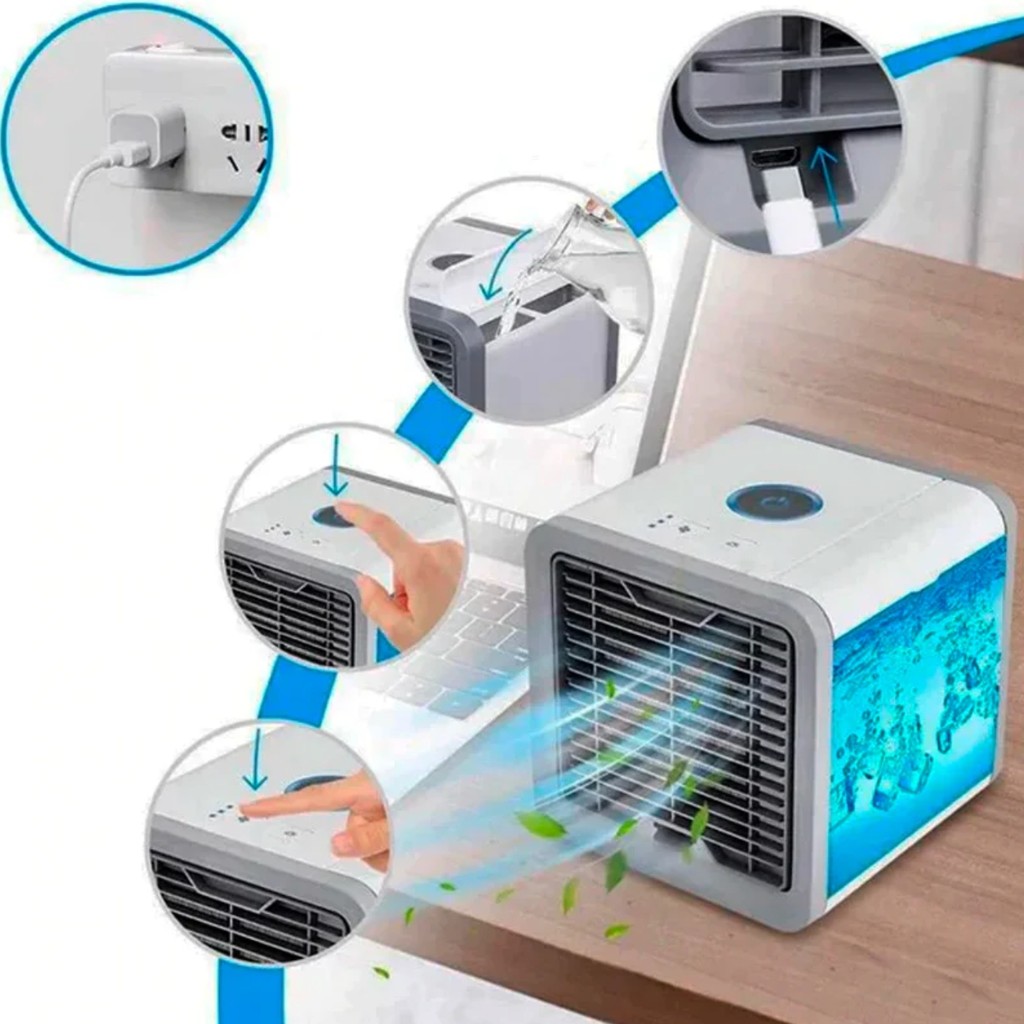 Mini Ar Condicionado Portátil Air Cooler Climatizador Umidificador Com Luz Led Usb