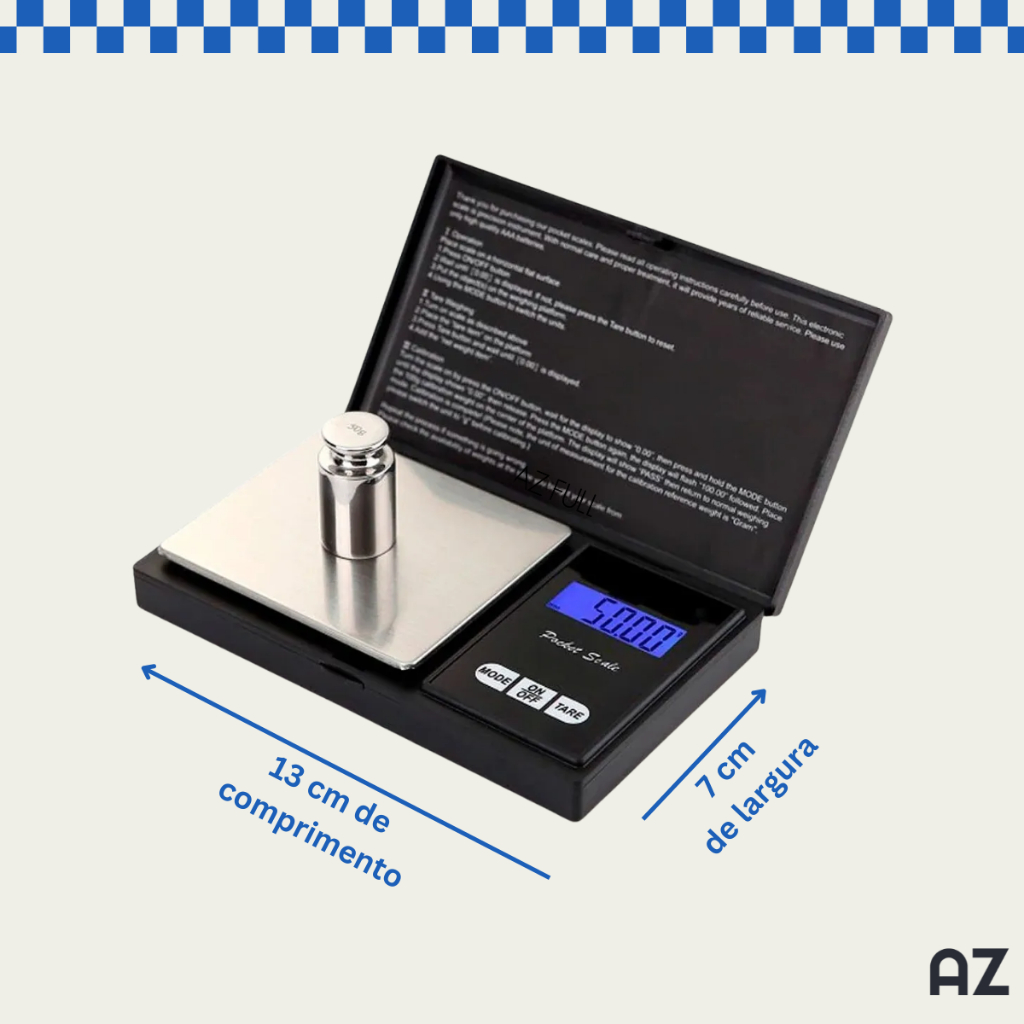 Ideal para pesar joias, temperos, pós, moedas e muito mais, essa balança compacta mede com exatidão desde 0,01g até 500g. Perfeita para quem exige resultados precisos em um equipamento leve, portátil e fácil de usar. Realize seu pedido até às 11:00 e enviaremos no mesmo dia! Produto acompanha nota fiscal! Características: Quantidade: Disponível em kits com 1, 2, 3 ou 4 unidades Cor: Corpo na cor preta com bandeja de pesagem em inox (prata) Capacidade de pesagem: 0,01g a 500g Precisão: Alta precisão de 0,01g Alimentação: 2 pilhas AAA (não inclusas) Unidades de medida: g (gramas), oz (onça), tl, ct (quilate), gn (grain) Funções extras: Tara automática, desligamento automático e display LCD com iluminação Sobre a Marca: Embala AZ é uma marca reconhecida pela qualidade e inovação em soluções de embalagem. Com uma ampla gama de produtos, a Embala AZ se destaca pelo compromisso com a segurança, durabilidade e eficiência, atendendo às necessidades de diversos segmentos do mercado.