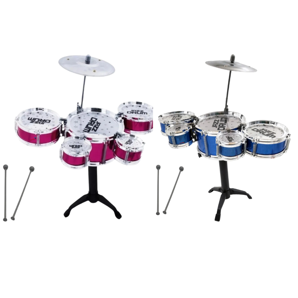 Mini Bateria Vermelho e Azul Musical Infantil Brinquedo com 5 tambores e Baqueta Menino Menina
