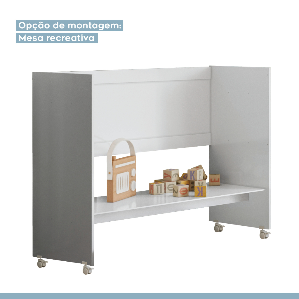 Transforme o quarto do seu bebê com praticidade e elegância! O Mini Berço Ruby Multifuncional 5 em 1 é ideal para acompanhar o crescimento do seu pequeno, oferecendo conforto, segurança e um design moderno que combina com qualquer ambiente. 🌟 Funcionalidades 5 em 1: ✔️ Mini Berço: perfeito para recém-nascidos que ainda não sentam ou se levantam sozinhos. ✔️ Mesa Recreativa: estimula o aprendizado e a brincadeira. ✔️ Mesa de Estudos: acompanha a fase escolar da criança. ✔️ Aparador / Escrivaninha: aproveitamento total do móvel ao longo dos anos. 🧸 Características: Estrutura resistente em MDF de alta qualidade Design elegante e moderno Rodízios que facilitam o transporte e movimentação Acompanha colchão para maior conforto do bebê Suporte para mosquiteiro incluso (mosquiteiro não acompanha) 📏 Dimensões: Altura: 80 cm Largura: 94 cm Profundidade: 43 cm Colchão: 91 x 39 x 7 cm 📦 Itens Inclusos: 1 Mini Berço Ruby 1 Colchão 1 Manual de montagem ⚙️ Montagem e Cuidados: Recomendado que a montagem seja feita por um profissional. Limpeza: utilizar pano macio levemente umedecido com água. ⚠️ Observações Importantes: Imagens meramente ilustrativas, objetos de decoração não inclusos. As tonalidades podem variar conforme a calibração do monitor. Verifique as dimensões antes da compra para garantir a passagem em portas, elevadores ou corredores. Confira a embalagem no momento da entrega.