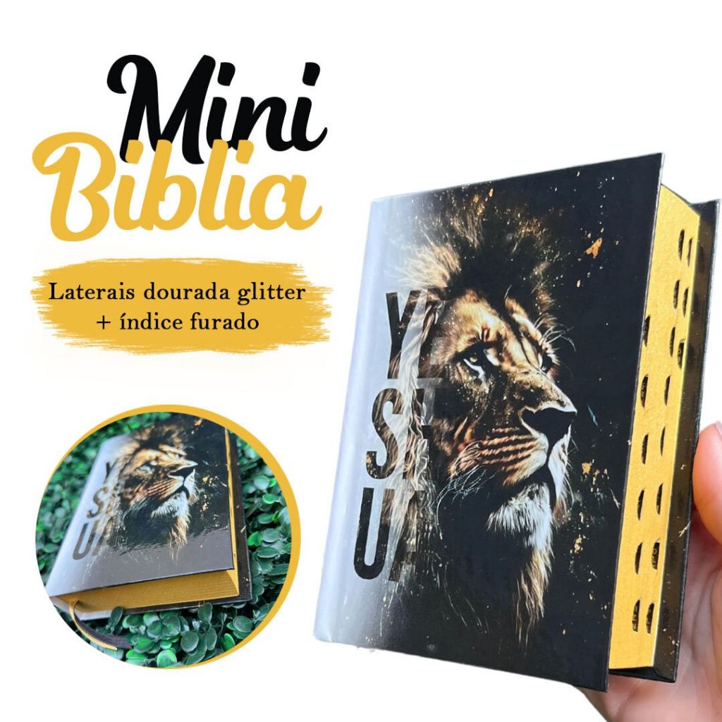 MINI Bíblia Evangélica para crianças com índice Letra Pequena ARC Leão Yeshua Dourada Jovem de Bolsa