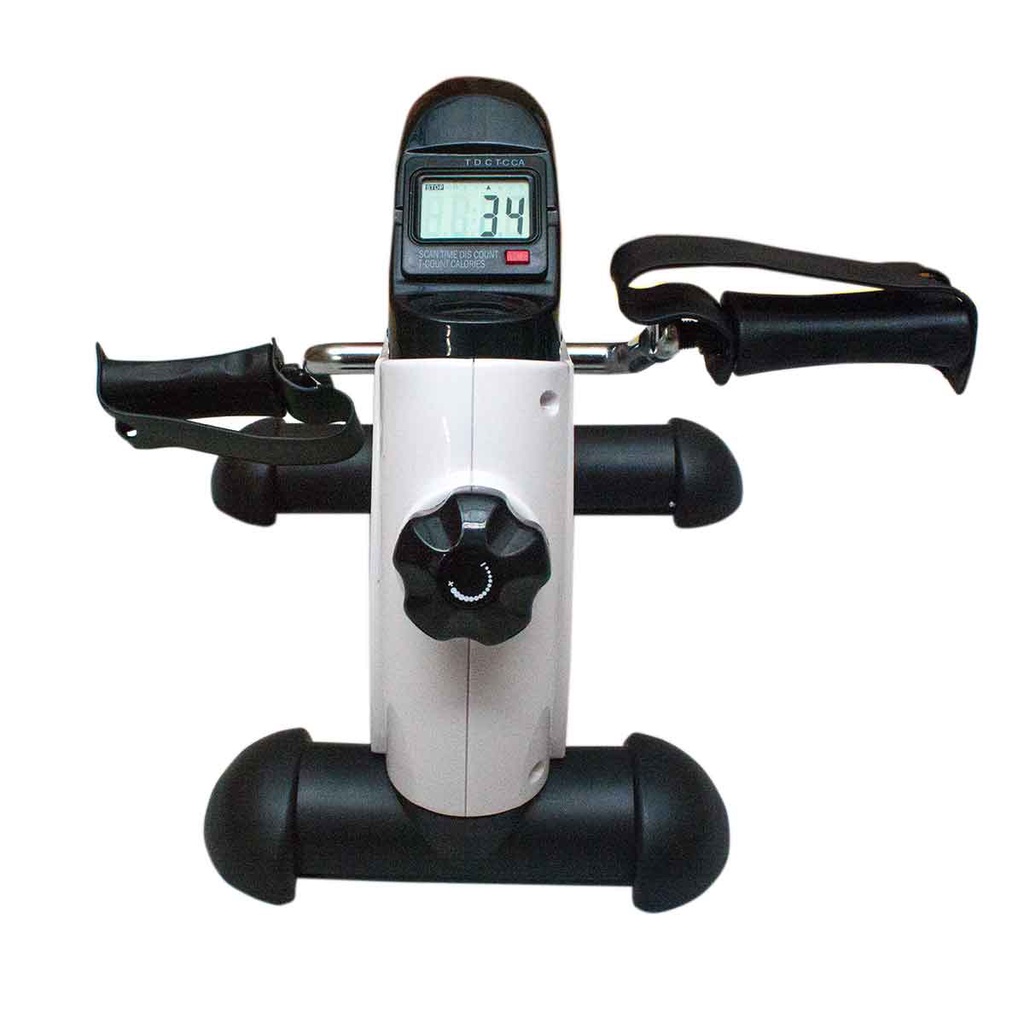 Ideal para exercitar pernas ou braços sentado, melhorando o movimento e equilibrio. Auxilia na reabilitação e condicionamento físico, estimulando também a circulação sanguínea e auxiliando na recupeção de lesões musculares. Pode pedalar sentado em uma cadeira ou sofá. Possui regulagem de força com botão ajustável de tensão, permite variar a intensidade do treino. Fácil de montar, pode ser instalado em qualquer espaço. Possui visor de LCD que indica tempo, distancia, contagem das voltas do pedal, total de voltas e calorias perdidas: Cada tela é mostrada por alguns segundos- T = tempo: mostra a duração das sessões de treino. D = distância: mostra a distância percorrida C = contagem: mostra os passos (repetições) T - C: contagem total: mostra os passos combinados (repetições) para todas as sessões de treinamento. CA: calorias: mostra a quantidade de calorias queimadas. Possui 2 pedais e apoio par as mãos emborrachado. Contém ajuste de esforço com as intensidades leve, médio e pesado. Peso máximo suportado: 100 kg. Alimentação: 1 Pilha AA. Material: Aço e borracha. Cor Disponível: Branco. Dimensões: Altura: 29 cm Largura: 24 cm Comprimento: 36 cm