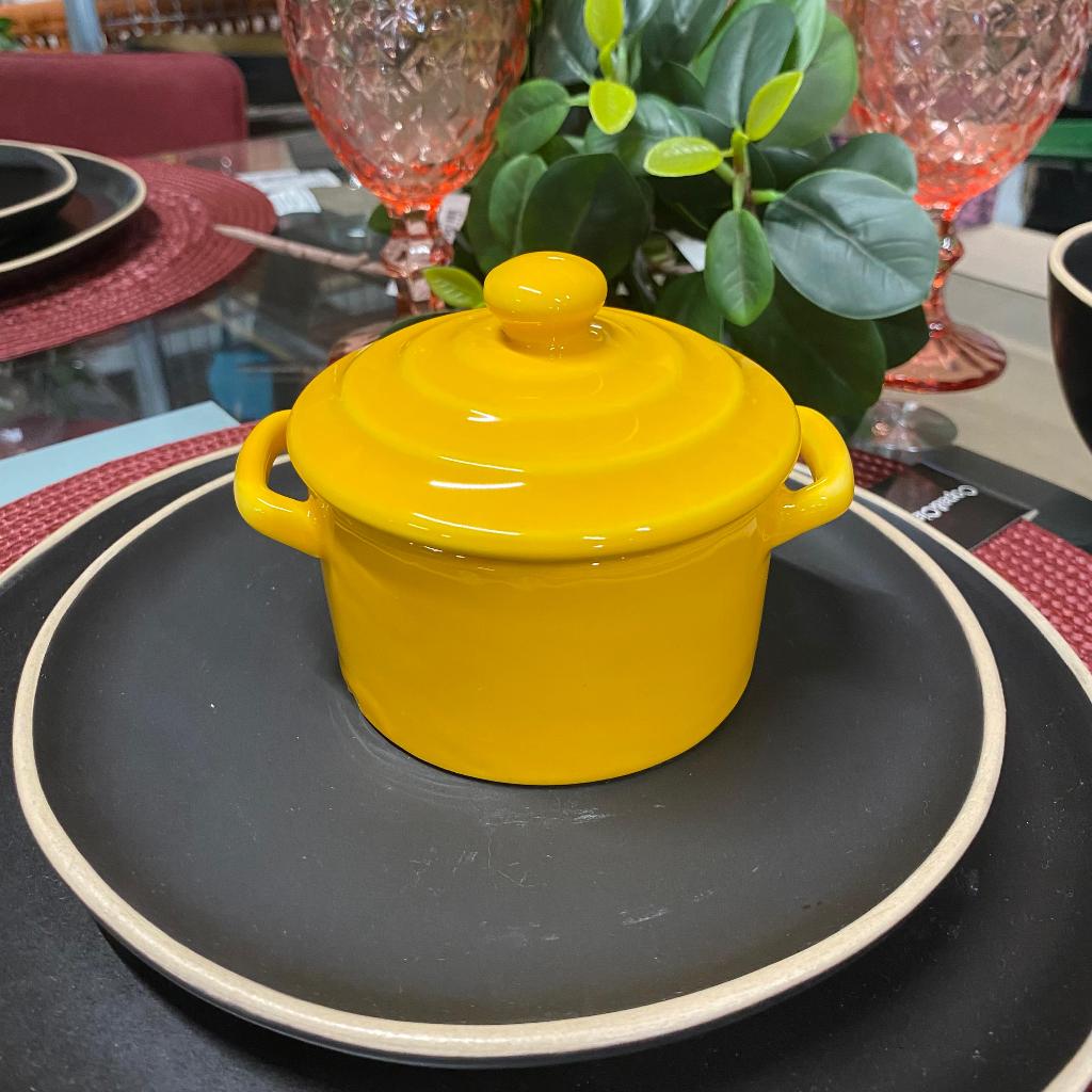 Mini Caçarola Cerâmica Amarela Esmaltada 250ml Moderna Panelinha Para Festa Buffet Servir