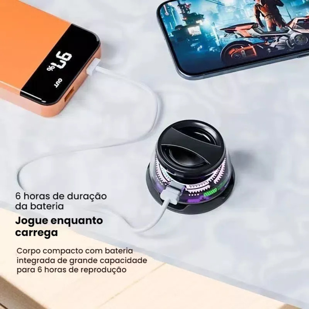 Mini Caixa de Som Portátil Magnética Ezra Bluetooth 5.4 Subwoofer IPX6 G200 Bateria 6h