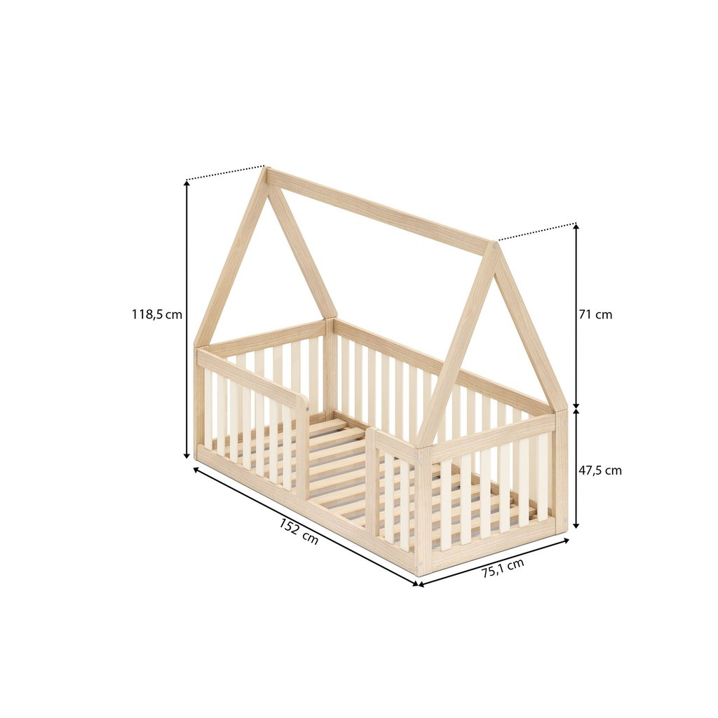 Mini Cama Montessoriana com Grade e Telhado Giulia Casatema MadeiraOriginals Natural/Bege