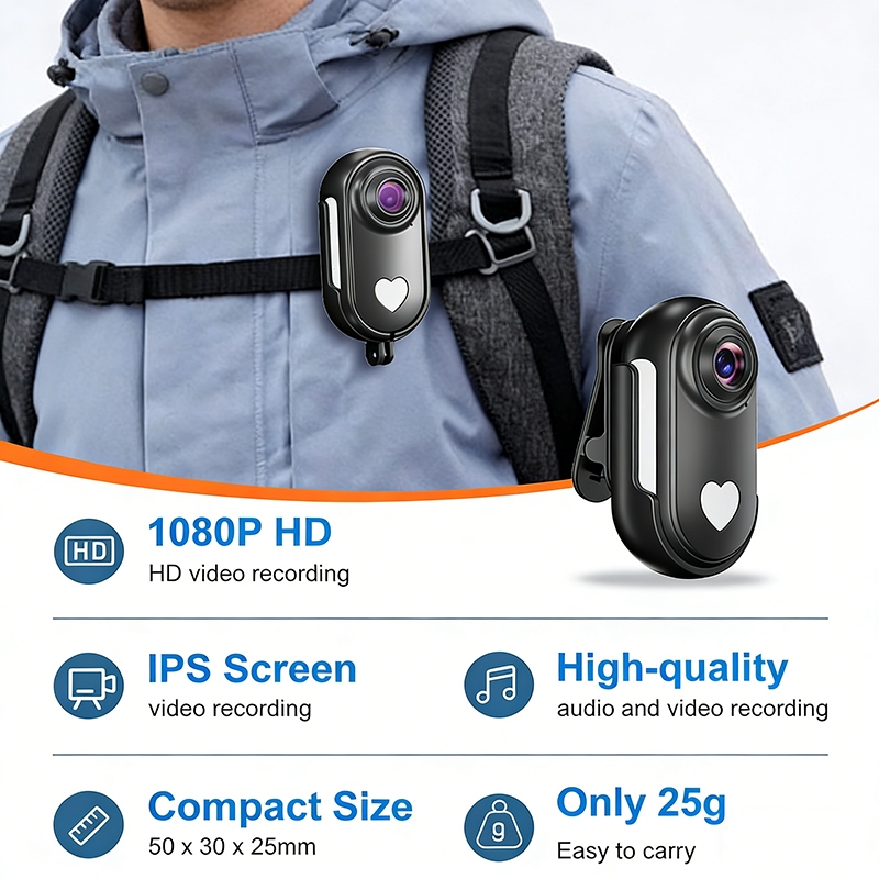 Mini Câmera De Ação Usada No Corpo Vestível , FHD 1080P , Gravação Mãos Livres Com Suporte Para Filmadora Portátil Premi