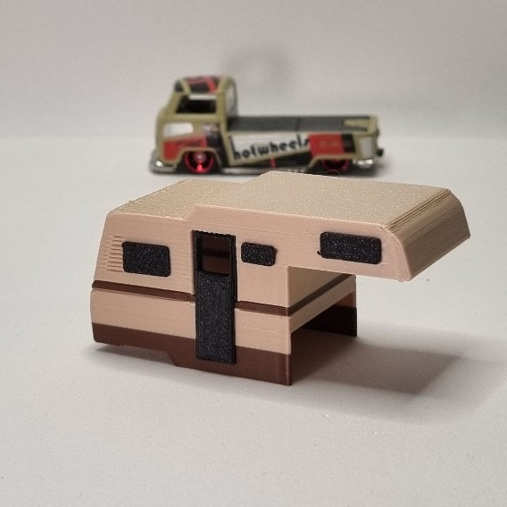 NÃO ACOMPANHA O CARRINHO, SOMENTE A CAÇAMBA! Transforme sua Hot Wheels Kombi Pickup T2 em uma verdadeira casa sobre rodas! Esta caçamba camper estilo retrô foi inspirada na lendária Karmann Ghia Safari, trazendo todo o charme das Kombis clássicas para o mundo das miniaturas na escala 1:64. 💡 Destaques do produto: *Encaixe perfeito na VW Kombi Pickup T2 da Hot Wheels; *Não é necessário desmontar nem modificar o carrinho; *Feito em PLA de alta qualidade; *Estilo retrô inspirado nas campers originais dos anos 70; *Ideal para dioramas, expositores e coleções 1:64. 🎁 Perfeito para: Colecionadores de Hot Wheels, entusiastas de Kombis, criadores de dioramas e apaixonados por miniaturas com história! ⚠️ Observação: Produto impresso em 3D — podem ocorrer pequenas variações de textura ou cor. Item decorativo, não indicado para crianças pequenas.