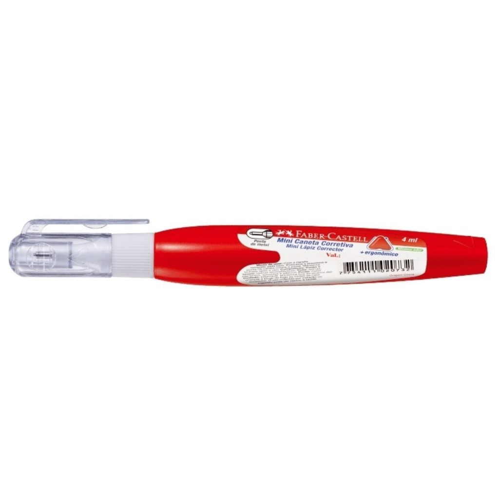 A Mini Caneta Corretiva 4 ml da Faber-Castell com corpo triangular vermelho é uma excelente escolha para quem busca precisão, praticidade e estilo na hora de corrigir textos. Principais Características - Volume: 4 ml de corretivo líquido. - Corpo triangular: ergonômico, oferece conforto e firmeza ao escrever. - Ponta metálica fina: ideal para correções detalhadas e precisas. - Secagem rápida: evita borrões e permite continuar a escrita logo após a correção. - Não entope: fórmula confiável para uso contínuo Essa canetinha é perfeita para estojos compactos e para quem gosta de manter tudo organizado com um toque de cor.