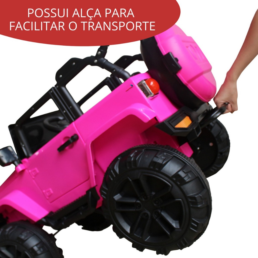 O Mini Carro Elétrico Jipe Infantil Importway BW028 com Controle Remoto é um brinquedo que vai garantir a diversão da criançada. Ele possui funções de frente e ré, com velocidade máxima de 3km/h, suas portas e porta-malas se abrem, além de acompanhar um controle remoto. Esse mini carro elétrico conta com certificado do INMETRO e ANATEL, e é indicado para crianças a partir de 3 anos. Recomendações de Segurança: Antes de utilizar esse produto, o adulto deve ler o Guia do Usuário, que acompanha o produto, para obter informações de segurança necessária bem como a maneira correta de montá-lo e usá-lo. Para então poder colocar para andar com a criança. Caso alguma função não desempenhe como esperado, repita o processo da montagem e conexão dos fios ou entre em contato com o suporte técnico do produto. Autonomia da Bateria: pode variar de acordo com o peso da criança, em média dura entre 1 à 2 horas. - Marca: Importway - Modelo: BW028 Características - Cor: Rosa - Indicado para crianças de 3 anos - Bateria recarregável de 12V - Tempo de carregamento: 10 a 12 horas - Velocidade máxima: 3 km/h - Peso máximo suportado: 25kg - Portas se abrem - Com USB e entrada AUX - Com função Swag - Certificado pelo INMETRO e ANATEL - Peso: 19,5kg - Altura: 70cm - Largura: 75cm - Comprimento: 115cm - Possui buzina: Sim - Acende farol: sim - Possui seta: não - Quantidade de assentos: 1 - Possui acelerador: sim - Possui Marcha ré: sim - Som emitido: Música, buzina e som de partida - Possui freio: sim - Possui cinto de segurança: sim - Possui som: sim - Possui conexão com pendrive de música: não - Possui conexão para cartão de memória com música: não - Material do pneu: plástico - Material do banco: Plástico - Possui controle remoto: Sim - Possui carregador: Sim - Possui botão para selecionar o uso com controle remoto ou condução direta no mini carro OBS: O controle remoto pode variar no modelo e cor, será enviado conforme disponibilidade do fornecedor. Itens Inclusos - 01 Mini Carro Elétrico Jipe Infantil Importway BW028 - 01 Carregador - 01 Controle Remoto Produto a pronta entrega A POSTAGEM SERÁ FEITA DENTRO DO PRAZO 24 HORAS ÚTEIS.
