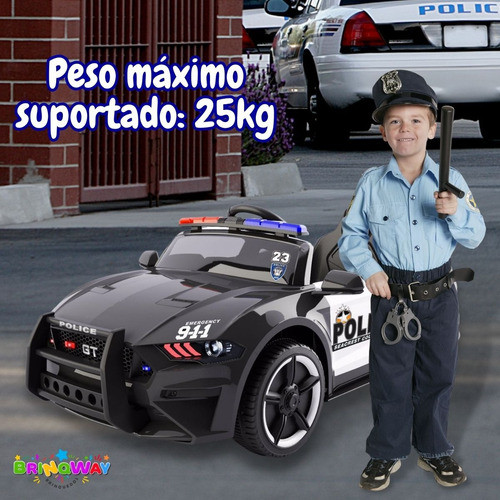 Mini Carrinho Policial Elétrico Preto Com Sirene E Mega Fone