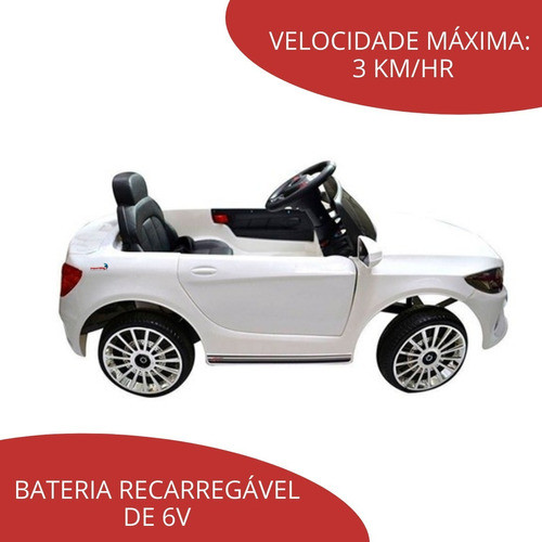 Mini Carro Elétrico Infantil Criança 6V com Controle Remoto Importway Branco BW-007-BR