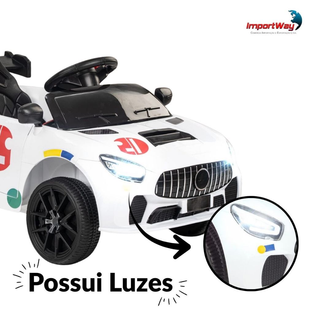 Mini Carro Elétrico Infantil Esportivo 12V Branco Com Controle Remoto Função Música E Luzes LED - Importway