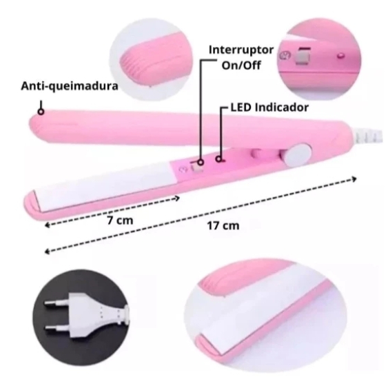 Mini Chapinha Prancha De Cabelo Portátil Com Case Transporte Bivolt Estojo