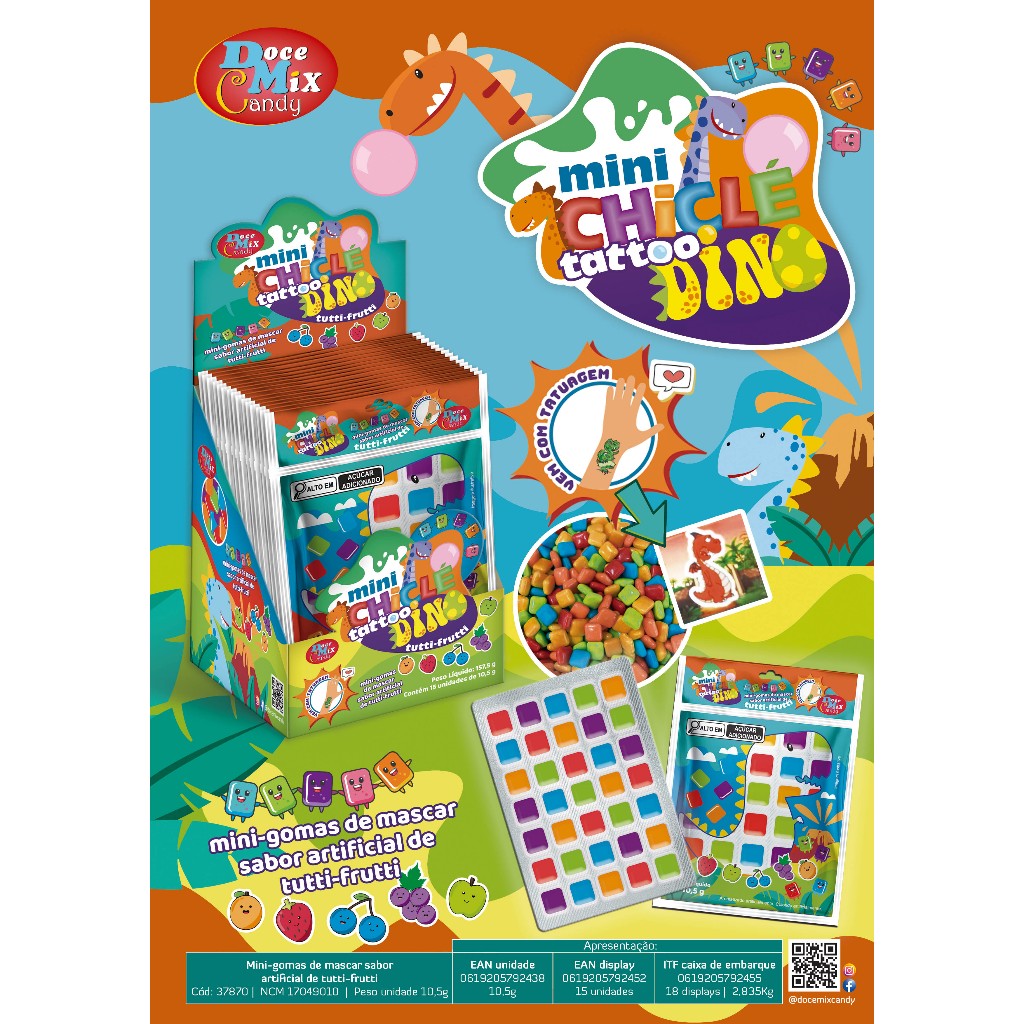 MINI CHICLE TATTOO DINO / MINI GOMA DE MASCAR 15UN. X 10G - Doce mix candy é bom?