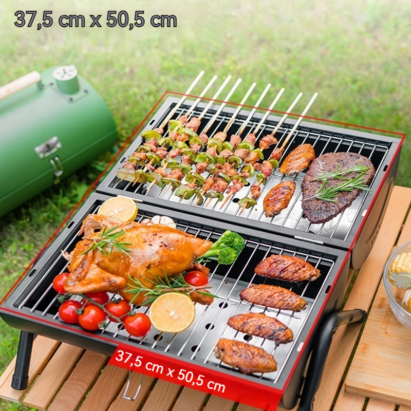 Funções de uso: brasear, churrasco Material: chapa de ferro laminada a frio O produto é embalado em uma caixa com revestimento de espuma interna. Vem com duas grades e dois protetores térmicos. Revestimento resistente a altas temperaturas, sem risco de queda de tinta. Atributos do produto: Os dois lados podem ser grelhados. Material da malha da grelha espessa. Superfície de aquecimento uniforme. Limpeza removível. Design de ventilação. Portátil para viagem, pode ser usado com as mãos. Aviso: Coloque o carvão sobre o protetor térmico, sem contato direto com o forno. Este produto utiliza carvão; não utilize lenha.