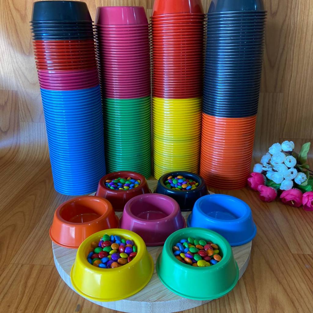 Muito utilizado para colocar lembrancinhas, docinhos, presentinhos dentro e dar aos convidados quando o tema da festa é Patrulha Canina. Pode personalizar esses comedouros em casa com adesivos e outros tipos de itens, como aplique da Patrulha Canina e mais... DIMENSÕES: Diâmetro 10cm - Altura 3cm - Volume 65ml. Cores a escolher no momento da compra. A foto é ilustrativa e a COR pode alterar de acordo com a tonalidade do lote de comedouros. OPÇÃO SORTIDOS APENAS: VERMELHO,, AZUL E ROSA PINK, AMARELO, ROXO E AZUL MARINHO
