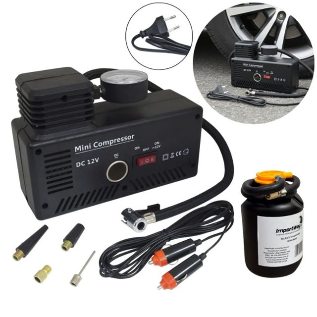 Mini Compressor de Ar Automotivo Elétrico 300PSI 30L/Min com Selante ImportWay Com o seu Mini Compressor de Ar Automotivo da Importway, as tarefas manuais que exigem pressão de ar serão muito mais simples, você economiza tempo e obtém excelentes resultados sem esforço. Especificações: • Marca: Importway • Modelo: IWMCA003 • Voltagem: 12V • Pressão máxima: 300psi • Fluxo de ar: 30L/min • Comprimento da mangueira de ar (com manômetro) : 39 cm • Possui 3 bicos adaptadores • Acompanha selante • Possui cabo de alimentação com 3 metros para conectar no acendedor de cigarro do carro Conteúdo da Embalagem: - 01 Mini Compressor de Ar Automotivo Elétrico 300PSI 30L/Min com Selante ImportWay "Compra Garantida" - Ao Comprar conosco a sua compra é 100% garantida, o seu dinheiro está seguro até a entrega. *Garantia 90 dias. *Imagens meramente ilustrativas Importway Importando Soluções com Qualidade, Inovação e Responsabilidade desde 2007.