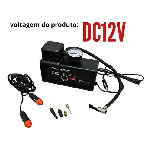 Mini Compressor De Ar 2 Em 1 Importway 250PSI Com Uso Elétrico E Automotivo, 30L/Min E 4 Bicos Adaptadores 127v