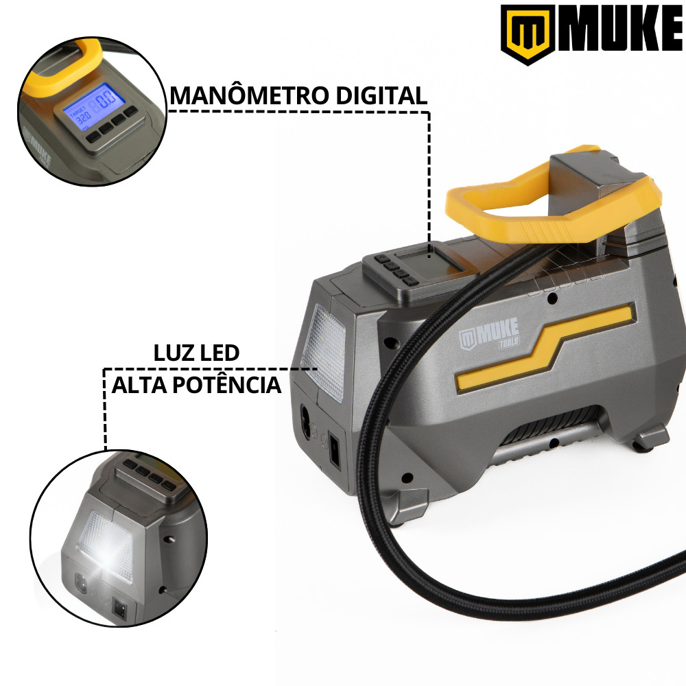 Mini Compressor de Ar Elétrico Portátil Bivolt 110/220V 12V Muke Tools 120W 150 PSI Para Carro Casa