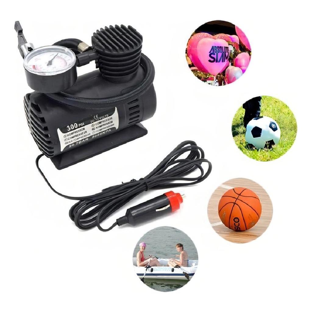 Compressor de Ar Portátil 300 PSI – Eficiência e Praticidade em Suas Mãos O Compressor de Ar Portátil 300 PSI é a escolha perfeita para quem busca eficiência, praticidade e segurança na hora de inflar pneus de automóveis, bicicletas, bolas e outros infláveis. Com design compacto e leve, é fácil de transportar e guardar, tornando-se um item indispensável para situações de emergência ou uso cotidiano. - Principais Características Alta Pressão de 300 PSI: proporciona enchimento rápido e eficiente de pneus e objetos infláveis. Portátil e Compacto: leve e fácil de armazenar no porta-malas, pode ser levado a qualquer lugar. Versátil: ideal para pneus de carro, moto, bicicleta, bolas e pequenos infláveis. Durável e Confiável: fabricado com materiais resistentes, garantindo longa vida útil e desempenho consistente. - Benefícios Inflagem rápida e segura sempre que precisar. Evita imprevistos durante viagens ou no dia a dia. Pronto para uso imediato, sem necessidade de calibradores manuais. Compacto e leve, cabe facilmente no veículo. - Especificações Técnicas Pressão máxima: 300 PSI Alimentação: 12V (conexão via acendedor de cigarros) Uso indicado: pneus de automóveis, motos, bicicletas, bolas e infláveis Tipo: compressor de ar portátil / mini compressor automotivo Tamanho: compacto e leve Material: plástico resistente e componentes metálicos