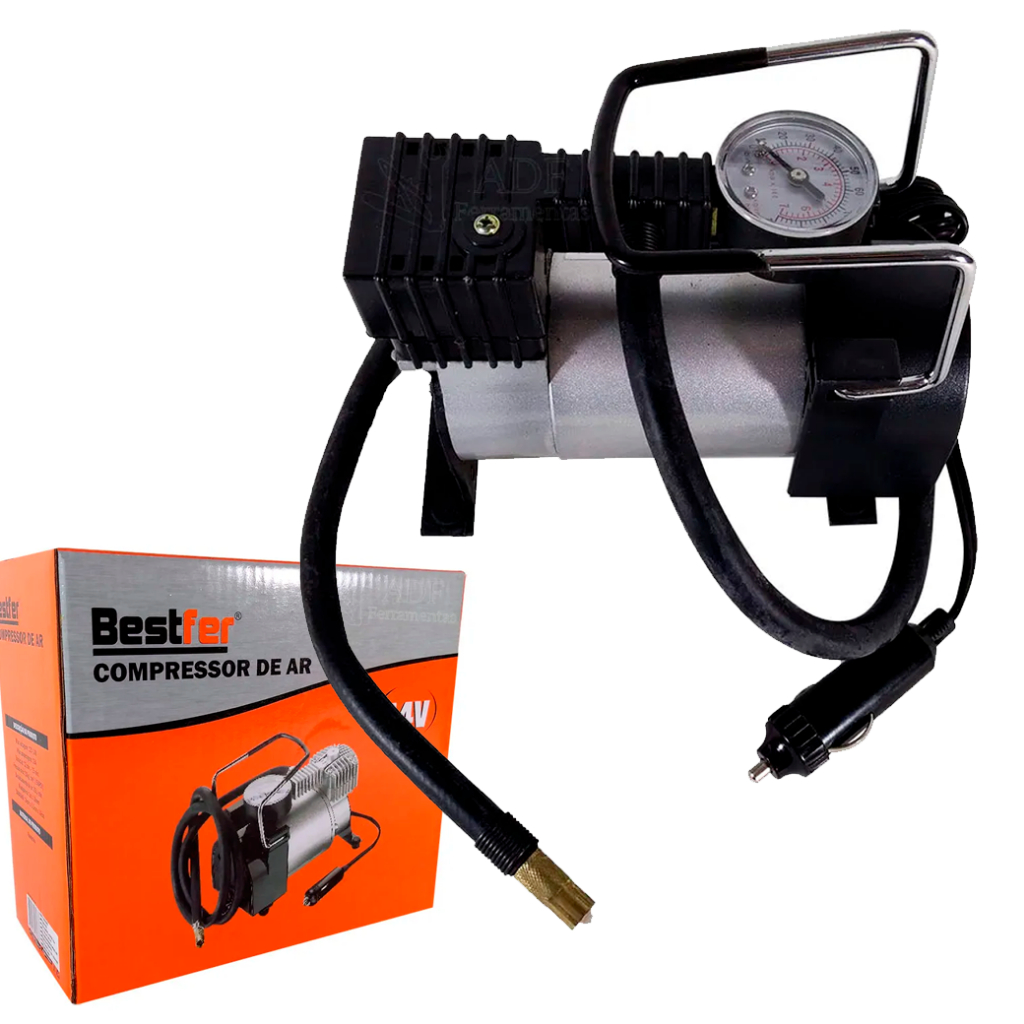 COMERCIAL VIPASA DISTRIBUIDORA. Este compressor de ar por ser compacto oferece praticidade e versatilidade para seu dia a dia, sendo ideal para encher Pneu de automóvel, pneu de bicicleta, equipamento esportivo, produtos infláveis, bola, bote, entre outros. Seus 3 modelos adaptáveis de bico, se adequam perfeitamente às suas necessidades, possuí plugue para conexão no acendedor de cigarros do veículo e manômetro de precisão. Descrição Máxima voltagem: 12V-14V Máxima amperagem: 15A Duração: 12-15 minutos Pressão máxima: 10kg/cm2 (150psi) Deslocamento de ar: 35L/min Mangueira 1m x 10mm Tamanho: 16cm x 6,5cm x 14cm Material do produto: Alumínio O Mini Compressor de Ar com Manômetro 14V da Bestfer é uma ferramenta portátil projetada para inflar pneus de carros, bicicletas, motocicletas, bolas esportivas, colchões infláveis e outros itens que requerem inflação. Aqui estão algumas características e informações sobre o produto: Portabilidade: O mini compressor de ar é compacto e leve, facilitando o transporte e o armazenamento em veículos, mochilas ou em casa. Fonte de Alimentação: Ele é alimentado por uma fonte de energia de 14V, o que pode ser fornecido através da conexão com a tomada de energia do veículo (conector do acendedor de cigarros) ou outra fonte de alimentação compatível. Manômetro Integrado: Possui um manômetro integrado que permite monitorar a pressão dos pneus ou outros itens infláveis durante o processo de inflação, facilitando a obtenção da pressão desejada. Fácil Utilização: O compressor de ar é projetado para ser de fácil utilização, geralmente com um interruptor de ligar/desligar e um botão para definir a pressão desejada. Acessórios Incluídos: Pode incluir uma variedade de acessórios para diferentes tipos de válvulas, como bicos adaptadores para válvulas de bicicleta, bolas esportivas e outros itens infláveis. Eficiência: Apesar do tamanho compacto, o compressor de ar é capaz de fornecer uma pressão suficiente para inflar pneus de veículos e outros itens infláveis de forma eficiente. Segurança: Geralmente possui recursos de segurança, como proteção contra superaquecimento e desligamento automático quando a pressão pré-selecionada é atingida. Versatilidade: Pode ser utilizado em uma variedade de situações, desde emergências na estrada até atividades recreativas ao ar livre. Antes de usar o mini compressor de ar, é importante ler e entender as instruções fornecidas pelo fabricante para garantir um uso seguro e eficaz. Certifique-se de verificar a compatibilidade da fonte de energia e os acessórios fornecidos com o compressor de ar para atender às suas necessidades específicas de inflação. COMERCIAL VIPASA DISTRIBUIDORA.