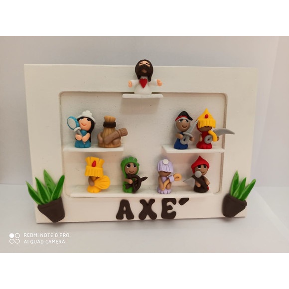 Kit mini congá - porta retrato Base em MDF - Porta retrato 19.5 X 13.5 cm aproximadamente Mini Orixás em biscuit Pode ser usado pendurado ou apoiado ---------------------------------------------------------------------------------------------------------------------------------------------------------------------------------------------- Por Favor, Leiam a Descrição Completa Olá!!! É importante ressaltar aqui que: Apesar do prazo de produção estar como 15 dias úteis, esse tempo pode variar para mais ou menos, de acordo com minha fila de produção. No ato do pedido, informarei a data prevista para o envio de sua encomenda. Em razão das peças serem feitas a mão, elas podem sofrer pequenas variações, inclusive nas tonalidades. Tire todas suas dúvidas por mensagens, antes de abrir o pedido.