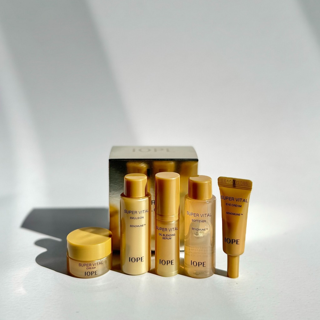 Conjunto de cuidados com a pele Super Vital IOPE (5 itens) Passo 1. Amaciante Super Vital, Amaciante 18mL Passo 2. Emulsão Super Vital, 18mL Passo 3. Sérum de mistura de óleo Super Vital, 5mL Passo 4. Creme para os olhos Super Vital, 3mL Passo 5. Creme Super Vital, Creme Super Vital, 5mL [Conjunto De cuidados com a pele coreana de luxo, perfeito para presente]: Nosso poderoso duo contém energia derivada de plantas para fornecer hidratação abundante e ingredientes nutritivos. O amaciante tonifica a textura da pele com umidade rica, enquanto a emulsão fortalece a barreira da pele e aumenta a firmeza da pele, enquanto a emulsão fortalece a barreira da pele e aumenta a firmeza. [Ingredientes Antienvelhecimento patenteados para a pele]: Super flavonóides, nossa fórmula proprietária contendo plantas e antioxidantes poderosos, recarregue a pele cansada com umidade e nutrição para obter uma pele firme. O Bio-Seletinóide Avançado protege a pele dos radicais livres e fornece tratamento focado em secura, linhas finas e todos os sinais de envelhecimento da pele. [Absorção Rápida com fórmula não pegajosa]: Formulada com o ingrediente nutritivo, manteiga de karité, é facilmente absorvida e hidrata a pele bloqueando a umidade. A fórmula macia e úmida mantém a pele hidratada durante todo o dia. [Hidratação Clinicamente testada e efeito Anti-envelhecimento]: Os produtos IOPE são apoiados por ciência e pesquisa. Dentro de uma semana, a pele fica mais macia e suave ao toque. Em 4 semanas, linhas e rugas aparecem mais preenchidas. A pele fica úmida e radiante com um brilho jovem. Resultados individuais podem diferir)
