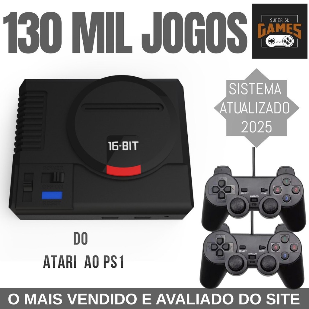 Mini Console Mega Drive Super 3D Games com 130 mil Jogos Retro e 2 Controles - Super 3D GameS