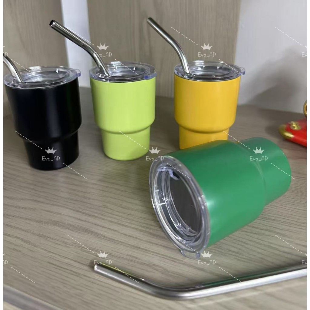Mini copo térmico, em aço inox, 90ml. Com tampa transparente e acrílica com abertura de 5.5 mm para sair do líquido e para o encaixe do canudo. Acompanha 1 canudo com 12 cm em inox, lavável. O mini copo mantém a temperatura felada por 4 h, com gelo por 6 h e quente por 1h. . OBS: Este anúncio se refere a 1 unidade Dimensões do produto: Altura 7 cm, largura de abertura 5,5 cm