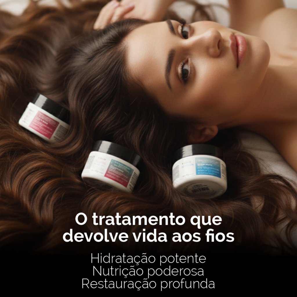 Kit Cronograma Capilar MyPhios: Hidratação, nutrição, reconstrução. Máscara Hidratação MyPhios 50g Máscara ultra hidratante, que confere controle do volume e desembaraço, promovendo emoliencia e penteabilidade aos cabelos. Formulado com Óleo de Macadâmia, Phenyl – Trimethicone e Óleo de Pracaxi, hidrata profundamente os fios secos e ressecados, restaurando a fibra capilar proporcionando maciez e brilho intenso. Hidra Brilho MyPhios. Ph 4,5/5,0 A Máscara Nutrição 50g Desenvolvida para o tratamento dos cabelos frágeis e enfraquecidos. Hidrata, nutre e repara os danos, doando maciez e luminosidade. Formulada com exclusivo Complexo de Aminoácidos, Sericina e Biotina. Ajuda na reconstrução da fibra e no fortalecimento, crescimento natural dos fios, doando maciez, brilho e devolvendo o aspecto natural aos cabelos. pH 5,0/5,5 Máscara Reconstrução 50g Tratamento capilar de alta performance, desenvolvida com tecnologia de última geração rica em Ativos Inovadores. Phylcortex, Luna Matrix e Aloe Vera. Este complexo de micropartículas de proteínas e aminoácidos de baixo peso molecular, possui extrema habilidade de reposição da massa cortical, reparando e reconstituindo toda área fragmentada por uso exagerado de produtos químicos ou pela ação atmosférica e mecânica devolvendo a naturalidade aos cabelos. Recupera e encorpa os fios doando vida aos cabelos danificados. Ph – 4,0/4,5 BENEFÍCIOS: Cronograma capilar para cabelos danificados. Hidra Brilho: Hidrata profundamente os fios, Nutre e repara intensamente, Deixa os fios macios e sedosos, Agrega e retém muito brilho aos fios. Cresce e Nutri: Nutrição intensa Crescimento acelerado dos fios redução da queda capilar Fortalecimento Nutrição da fibra Renova Meu Cabelo: Reparação instantânea dos fios Reparação completa Resistência e fortalecimento da fibra. MODO DE USO Com os cabelos ainda úmidos, aplicar quantidade suficiente da máscara selecionada sobre os fios, massagear e deixar agir de 05 à 10 minutos. Após isso, enxaguar e aplicar o condicionador. PRECAUÇÕES Manter em lugar fresco e ao abrigo de luz. Uso externo adulto. Em caso de contato acidental com os olhos, enxaguar abundantemente. Havendo irritação suspenda o uso. Caso persista, procure orientação médica. Não ingerir, manter fora do alcance de crianças.