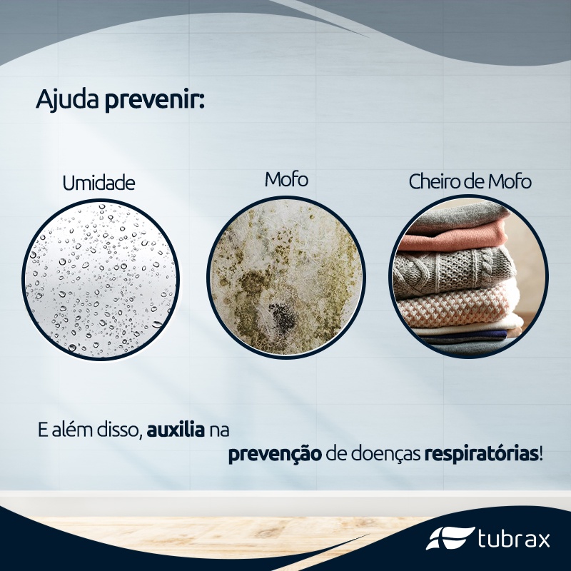Mini Desumidificador de Ar Tubrax® O Mini Desumidificador de Ar Tubrax® é perfeito para espaços pequenos! Ele atua na redução do mofo e fungos causados pela pouca ventilação em ambientes como guarda-roupas, despensas e armários, atenuando a umidade indesejada. Extrai até 300ML de água por dia. Mais saúde para você e sua família! Desfrute de um ambiente com qualidade do ar elevada, com redução considerável de micro-organismos que fazem mal à saúde. Silencioso e econômico! O Mini Desumidificador de Ar Tubrax® utiliza a tecnologia Peltier (sem compressor), o que o torna silencioso e econômico, gastando menos energia. Facilidade e segurança! Não precisa se preocupar: o Mini Desumidificador de Ar Tubrax® desliga automaticamente quando o reservatório de água está cheio. Produto compacto! Ele é pequeno, leve e portátil, permitindo fácil locomoção para qualquer ambiente da casa. ESPECIFICAÇÃO TÉCNICA: - Marca: Tubrax - Tensão: 127-220V BIVOLT - Frequência: 60Hz - Potência: 22,5W - Ruído: 33dB - Capacidade de desumidificação: Aproximadamente 250ml-300ml por dia (nas condições ideais de temperatura ambiente e umidade relativa do ar). - Capacidade do reservatório de água: 500ml - Utiliza tecnologia Peltier - Possui indicador “ligado/cheio” - Acompanha manual de instruções em PT-BR - Peso: 900g - Garantia: 3 meses contra qualquer defeito de fabricação.