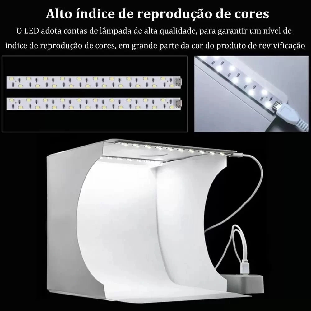 Mini Estúdio Fotográfico Portátil Studio Com Luz Led Photo Led Usb Portatil Foto 20 X 20cm Design Compacto Baixo Consumo