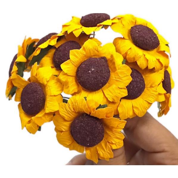 Mini Flor Girassol de Papel para Artesanato, Scrapbook, Personalizados