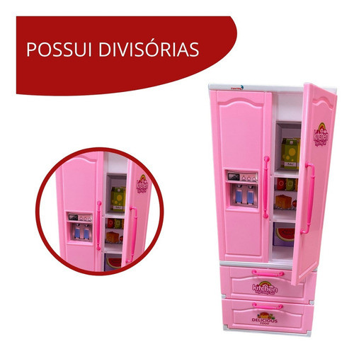 Mini Geladeira Infantil 2 Portas Brinquedo Faz de Conta Sonho Infantil Rosa Importway