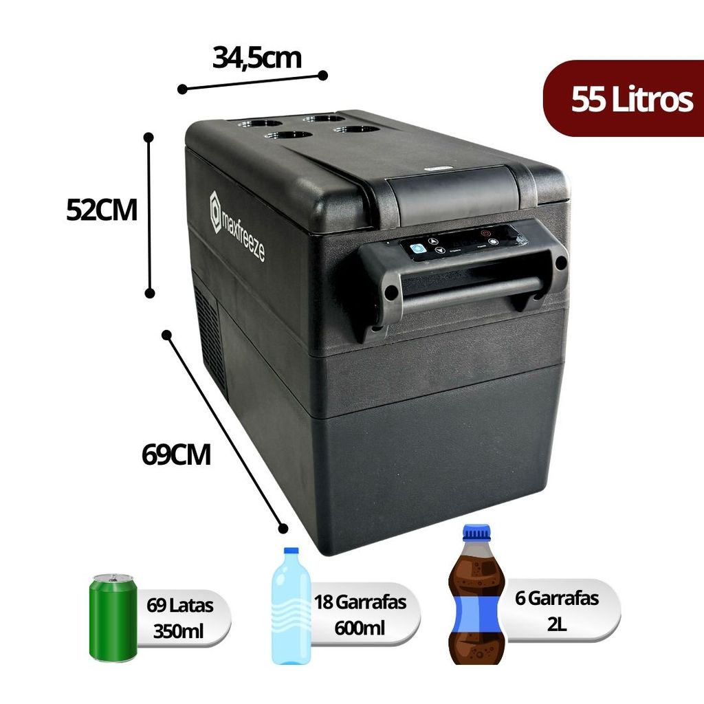 Geladeira Portátil 55 Litros Freezer Quadrivolt 12v/24v 110v/220v Caminhão Ônibus Van Carro Maxfreeze Imagine nunca mais depender de gelo, isopores que vazam ou comidas caras na estrada. Abrir sua geladeira no meio de uma viagem longa, pegar uma água trincando, um lanche fresco ou até mesmo uma comida congelada. Isso não é um sonho, é a realidade que a Geladeira Portátil da Maxfreeze oferece. A geladeira vem equipada com um compressor potente e silencioso que congela de verdade, atingindo temperaturas de até -20°C. Com seus 55 Litros de capacidade e seu dois compartimentos, você tem espaço para organizar seus alimentos e bebidas. Além de tudo ela é Quadrivolt, funcionando tanto na tomada 12v/24v do seu caminhão, carro ou barco, quanto na tomada 110v/220v de casa ou do camping. Controle tudo na palma da sua mão com o aplicativo via Bluetooth e viva a liberdade de ter sua própria cozinha em qualquer lugar. - QUADRIVOLT - LIBERDADE TOTAL: Use no caminhão (24V), no carro (12V), em casa (110V) ou no camping (220V). A única geladeira que você vai precisar para todas as situações. - PROTEÇÃO INTELIGENTE DA BATERIA: Viaje sem medo de ficar sem bateria. Possui um sistema de proteção que desligam o aparelho antes de descarregar a bateria do seu veículo. - DUPLO COMPARTIMENTO INTELIGENTE: Com 55 litros de capacidade e cestos removíveis, organize facilmente seus itens, separando o que precisa gelar do que precisa congelar. A luz de LED interna facilita o uso à noite. - CONTROLE VIA BLUETOOTH: Ajuste a temperatura, monitore a voltagem da bateria e troque entre os modos de operação diretamente pelo aplicativo no seu celular. Tecnologia e conveniência na sua mão. Características: - Marca: Maxfreeze - Código: EDN355 - Código Original / Referência: 355 Especificações: - Cor: Cinza - Potência: 48W - Luz de LED interna - Com cesto removível - Capacidade: 55 Litros - Controle: Painel Digital - Com conexão Bluetooth - Possui Proteção da Bateria - Faixa de Temperatura: -20°C a +20°C - Modo de resfriamento: Freezer, Geladeira - Dimensões Internas: 50 (C) x 26 (L) x 46 (P) - Material: ABS, Alumínio, PP, PU, Placa PCM - Certificações: CE, RoH2, LFGB, E-marcas, PAH - Voltagem: Quadrivolt (12V/24V e 110V/220V) - Dimensões Externas: 70 cm (C) x 34 cm (L) x 53 cm (A) - Tipo de Refrigeração: Compressor com gás R600a / Peso 34g - Modo congelamento: máximo (MAX) ou Modo economia (ECO) - Isolamento: Alta quantidade de isolamento de espuma integral de poliuretano, isenta de CFC - 2 compartimentos individuais, medidas: Compartimento maior: 32 (C) x 25 (L) x 39 (A) / Compartimento menor: 28 (C) x 16 (L) x 22 (A) Aplicação: Universal MotorHome Caminhão Carreta Carro Van Garantia 1 Ano Itens Incluso: 1 - Geladeira 1 - Cabo de energia 1 - Cabo para ligar no veículo 1 - Fonte de alimentação externa ------------------------------------------------------- - A AMPEC AUTOPEÇAS não se responsabiliza pelo mau uso ou instalação indevida do produto, sempre recomendamos que a instalação seja feita por um profissional especializado. - O produto é novo ? Sim, não trabalhamos com produtos usados, remoldados ou remanufaturados. -Tem disponibilidade do produto ? Temos disponibilidade de todos nossos produtos enquanto durarem os estoques. -O produto vem com nota fiscal ? Sim, todos os nossos produtos acompanham nota fiscal. - Imagem ilustrativa utilizada para identificação e demonstração de produto. - As Marcas e Modelos citadas no anúncio, pertencem aos seus respectivos fabricantes, somente mencionadas como referências para o uso correto do produto, conforme artigo 31 da Lei: 8078 de 11.09.1990 * Não temos qualquer vínculo com estas empresas. Infelizmente não emitimos NF para revenda fora do estado do Paraná. Desculpe. Fora do estado atendemos apenas destinado a consumidor final.