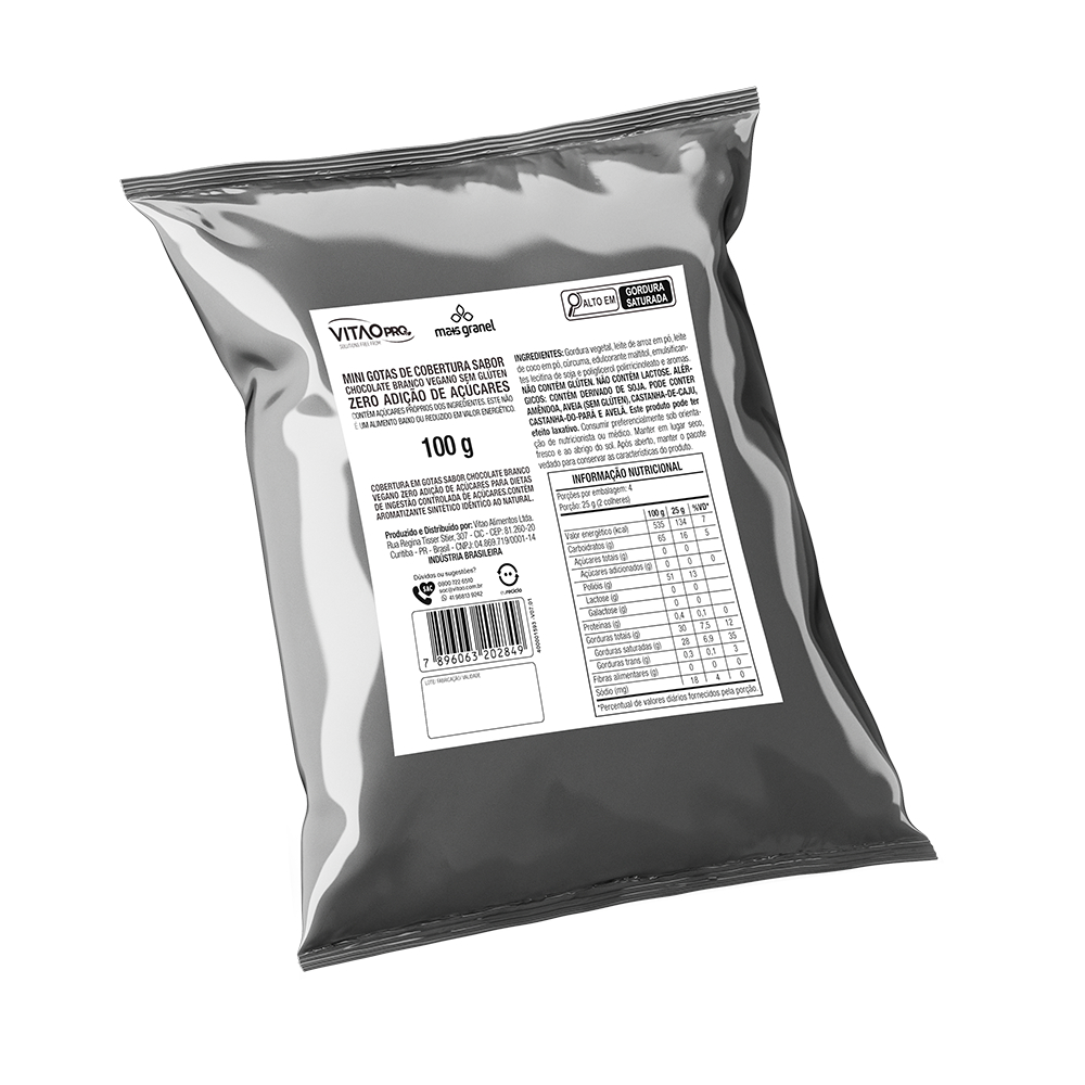 Desfrute da qualidade excepcional das Mini Gotas de Cobertura sabor Chocolate Branco Vegano Zero Açúcar VitaoPRO 100g. Com um sabor equilibrado e envolvente, este chocolate vegano é cuidadosamente elaborado, proporcionando uma experiência única para os apreciadores de chocolate branco, sem adição de açúcar sem lactose e sem glúten. Uma alternativa prática e deliciosa para receitas que respeitam dietas especiais e priorizam qualidade. Desenvolvido para uso profissional no setor de alimentação, o chocolate da Vitao destaca-se por sua versatilidade, sendo uma adição perfeita em diversas receitas, desde confeitaria até sobremesas gourmet. Sua textura cremosa e sabor inconfundível fazem dele uma escolha premium para elevar o padrão das suas criações culinárias de forma mais saudável. Formuladas para resistir ao calor do forno e adicionar qualidade aos seus pratos sem comprometer suas preferências alimentares. INGREDIENTES: Gordura vegetal, leite de arroz em pó, leite de coco em pó, cúrcuma, edulcorante maltitol, emulsificantes lecitina de soja e poliglicerol polirricinoleato e aromas. ALÉRGICOS: CONTÉM DERIVADO DE SOJA. PODE CONTER AMÊNDOA, AVEIA (SEM GLÚTEN), CASTANHA-DE-CAJU, CASTANHA-DO-PARÁ E AVELÃ. NÃO CONTÉM GLÚTEN. NÃO CONTÉM LACTOSE. SEM GLÚTEN, ZERO ADIÇÃO DE AÇÚCARES, SEM LACTOSE, VEGANO.