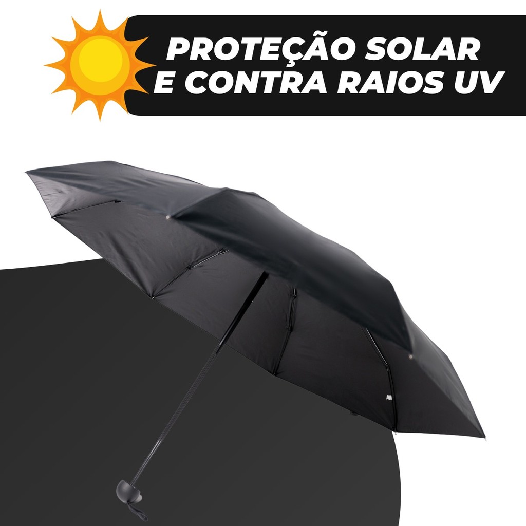Mini Guarda Chuva Bolsa Cápsula De Bolso Portátil Anti-uv Ultra Compacto Pequeno O Mini Guarda-Chuva Bolsa Cápsula Portátil Anti-UV é o acessório perfeito para quem busca praticidade, estilo e proteção contra o sol e a chuva. Com um design ultracompacto, ele cabe facilmente na palma da mão e pode ser guardado na bolsa, mochila ou até mesmo no bolso do casaco. Sua cápsula protetora mantém o guarda-chuva dobrado de forma discreta e organizada. Ideal para qualquer clima, este mini guarda-chuva possui um revestimento especial com proteção UPF 50+, bloqueando os raios UV prejudiciais e evitando danos à pele. Além disso, sua estrutura resistente garante proteção eficaz contra chuvas repentinas, permitindo que você se mantenha seco e confortável. O sistema de abertura manual simplificada facilita o uso, tornando a experiência ainda mais prática. Disponível em cores modernas e elegantes, combina com qualquer estilo e ocasião. Seja para um dia de sol intenso ou uma chuva inesperada, este mini guarda-chuva é a escolha ideal para estar sempre preparado! Especificações Técnicas: • Tipo: Mini Guarda-Chuva Portátil • Proteção Solar: UPF 50+ (bloqueia raios UV) • Material do Tecido: Poliéster de alta densidade • Material da Estrutura: Liga de alumínio e fibra de vidro • Sistema de Abertura: Manual simplificado • Resistência ao Vento: Alta resistência para maior durabilidade Dimensões: • Aberto: 100 cm de Largura x 90 cm de Altura • Fechado: 15 cm de Altura x 4 cm de Largura FAQ – Perguntas Frequentes: 1. O guarda-chuva realmente protege contra raios UV? Sim! Ele possui revestimento especial UPF 50+, bloqueando eficazmente os raios UV e ajudando a proteger a pele dos danos solares. 2. O guarda-chuva é resistente ao vento? Sim! Sua estrutura em liga de alumínio e fibra de vidro proporciona maior resistência contra ventos moderados. 3. Ele cabe em bolsas pequenas? Sim! Com apenas 15 cm de altura quando fechado, ele é compacto e fácil de transportar. 4. O guarda-chuva vem com a cápsula protetora? Sim! Ele acompanha uma cápsula protetora rígida, garantindo armazenamento seguro e prático. Conteúdo da Embalagem: • 01 Mini Guarda-Chuva Bolsa Cápsula Portátil Anti-UV • 01 Cápsula Protetora Importante: Valor Unitário Imagens Meramente Ilustrativas Não nos responsabilizamos pelo mau uso do produto