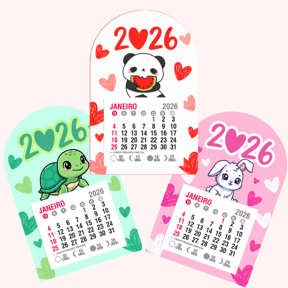 Mini Imã de Geladeira com Calendário 2026 8x12cm Bichinhos Fofos