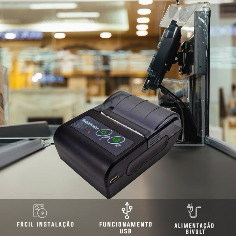 Mini Impressoras Portatil Bluetooth Termica 58mm Android Ios Especificações Técnicas do Produto: Nome: Mini Impressora Via Bluetooth Portátil Térmica 58mm Compatível Com Androide e IOS Modelo: MTP-II Largura do papel de impressão: 57mm Largura de impressão: 48mm Diâmetro do rolo de papel: 40mm Resolução: 8 pontos Fonte de energia: Bateria de Lítio recarregável 1500MAH Adaptador: Entrada 110v/220v - 50Hz Saída 5v 1A Tamanho do produto: 78x105x47mm Peso: 216 gramas não imprime etiqueta adesiva ! ! ! ❤️ SEMPRE VOLTO A COMPRAR! Warranty Duration:1 Mês Warranty Type:Sem Garantia Fiado / sem fio:Sem Fios
