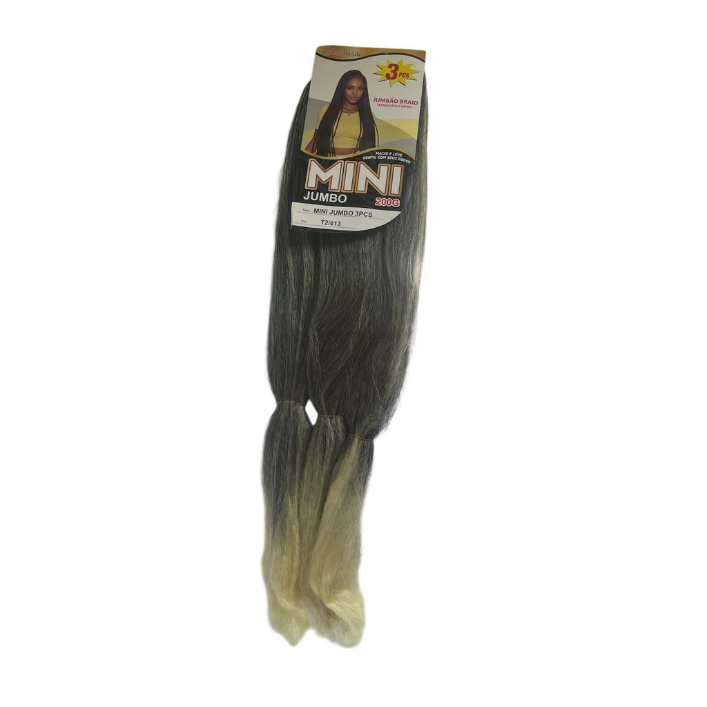 1 pacote não faz a cabeça toda Transforme suas tranças com o Mini Jumbo Pré Esticado! Este kit contém 3 peças de jumbo pré esticado, totalizando 200g, perfeito para quem busca praticidade, volume e acabamento natural. ✔ Pré esticado – facilita a aplicação e deixa o resultado mais leve e natural ✔ Fios macios e sem embolar – ideal para tranças box braids, twists e penteados diversos ✔ Ótimo rendimento – 200g distribuídos em 3 peças ✔ Cores vibrantes – realce seu visual com muito estilo Produto leve, confortável e de alta durabilidade. Pronto para uso e compatível com vários estilos de trançamento!