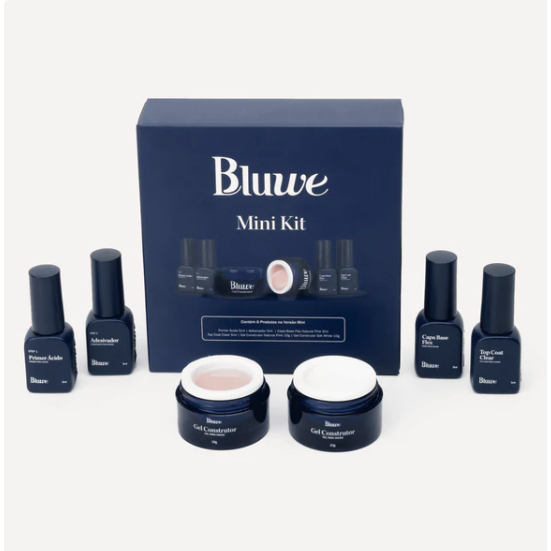 O Mini Kit Bluwe é composto por 6 produtos essenciais para a nail designer entregar alta resistência, qualidade e segurança em mesa. Prático, sem desperdício e fácil de ser transportado, é o Kit ideal para quem está iniciando a carreira como nail designer, realiza atendimentos em lugares diversos ou para treinamentos e aulas práticas para nail designer. Após a preparação física da unha, limpe a lâmina com o Higienizador e aplique uma camada de Primer Ácido, seguida do Adesivador. Utilize o Capa Base Flex sobre a unha preparada e polimerize sob luz UV por 60 segundos. Aplique uma camada do Gel Construtor da sua escolha e polimerize sob luz UV por 120 segundos antes de finalizar seu procedimento com o Top Coat, polimerizando sob luz UV de 60 a 120 segundos. Incluso: 1 Step 1 5ml - Bluwe 1 Step 2 5ml - Bluwe 1 Capa Base Flex Natural Pink 5ml - Bluwe 1 Top Coat Clear 5ml - Bluwe 1 Gel Construtor Natural Pink 10g - Bluwe 1 Gel Construtor Silk White 10g - Bluwe