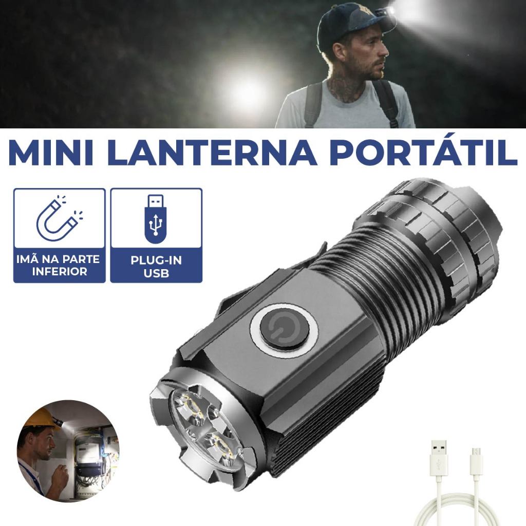 Mini Lanterna Portátil Led Imã embutido alta potência carregador USB Bivolt