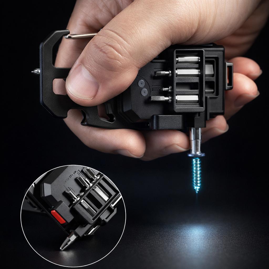 Mini Lanterna Refletor 7 em 1 com Ferramentas Recarregável Aleatória Abridor de Lata e Chaveiro