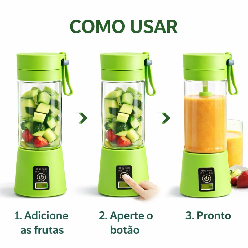 Ideal para academia, dieta, suco detox, vitamina e shake de proteína. 🥤🧃Tenha seu suco ou shake pronto em segundos onde estiver! O Mini Liquidificador Portátil é perfeito para quem busca praticidade no dia a dia. Ideal para academia, dieta, trabalho, escola, viagens ou uso em casa. Com design leve e recarregável por USB, você prepara vitaminas, sucos naturais e shakes de proteína sem precisar de tomada. ⸻ ⭐ Principais Benefícios ✔ Portátil e sem fio ✔ Recarregável por USB ✔ Prepara sucos e shakes em até 30 segundos ✔ Fácil de limpar ✔ Leve e compacto (cabe na bolsa ou mochila) ✔ Ideal para frutas, vitaminas e whey protein ⸻ 🔪 Alta eficiência Possui 6 lâminas em aço inox com rotação potente, triturando frutas, gelo pequeno e ingredientes macios rapidamente. ⸻ 🔋 Bateria recarregável Carregamento via cabo USB (acompanha o produto). Pode ser carregado em: • carregador de celular • notebook • computador • power bank ⸻ 📦 O que você recebe • 1 Mini liquidificador portátil • 1 Cabo USB para carregamento ⸻ 📏 Especificações Capacidade: 380ml Material: ABS + copo resistente Alimentação: USB recarregável Tempo médio de preparo: 30 segundos 🎨 Cores Enviadas aleatoriamente conforme disponibilidade de estoque. ⚠️ Dicas de uso • Corte as frutas em pedaços pequenos • Adicione um pouco de líquido (água ou leite) para melhor funcionamento • Não utilizar enquanto estiver carregando “Pedidos confirmados até 16h são enviados no mesmo dia útil.”