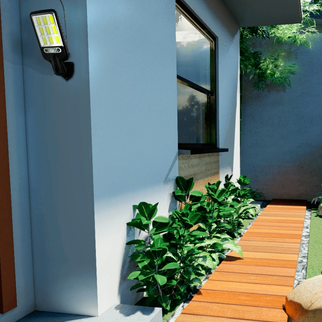 Mini Luminária Solar Rua Led Sensor Presença 60w 9cob Luminária Solar Parede Sensor Presença Com 3 Funções Esta é uma luminária solar com detector de movimento e acendimento automático, que funciona com energia solar e é à prova d’água. Ela é ideal para iluminar áreas externas, como caminhos, jardins, corredores, etc. Ela tem três modos de funcionamento, que podem ser selecionados pelo botão. Veja a seguir as características e o conteúdo do pacote deste produto. 🔆Características Material: ABS+PC Sensor de luz Solar de Energia:60Watts Fonte de energia: Solar 128 / 120 COB SMD 3050 Potencia de iluminação: 25W em Led, equivalente a 200W Incandescente. Bateria: 3.7V 2 peças 18650 *1200 mah Painel Solar: 3.2V 4W Proteção em Nível: IP65 Distância de detecção: 3 m Autonomia de iluminação: 8 horas Tempo de vida do led: 50000 (h) Cor dos Leds: Branco Tipo de instalação: Fixado Na Parede o chão Interruptor: Botão/Controle Medidas: 21X8,5X2 cm Sensor de movimento ângulo: 120º Interruptor :ON/OFF 🔆Modos de funcionamento FUNÇÃO 1: Permanece desligada quando não detecta movimento, acende sua luz máxima sempre que detectar movimento.(PRESSIONE BOTÃO DE LIGAR 1 VEZ) FUNÇÃO 2: Ligada em luz fraca e acende luz máxima ao detectar movimento. (PRESSIONE BOTÃO DE LIGAR DUAS VEZES) FUNÇÃO 3: Ligada de forma constante em luz média mesmo sem detectar movimento. (PRESSIONE BOTÃO DE LIGAR TRES VEZES) 🔆Conteúdo do pacote Luminária solar com painel solar Controle Parafusos Buchas *Todos os nossos itens são conferidos e testados antes do envio. **Trabalhamos apenas com materiais que conhecemos e confiamos para proporcionar o melhor custo benefício para você. ***Verifique se todas as informações estão corretas antes de finalizar a seu pedido ****Garantia de 03 Meses Desejamos a você uma ótima compra!